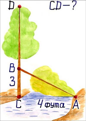 | Давайте вспомним формулировку теоремы Пифагора (ответы учащихся). А обратную теорему Пифагора? Правильно. А что мы знаем об этой теореме? В каком треугольнике работает теорема? Свойство 30° в прямоугольном треугольнике? Сумма острых углов треугольника? | Где еще можно использовать теорему Пифагора, кроме уроков математики? | Перед учащимися возникает проблема: как найти длину упавшей части тополя? До какой точки от ствола опасно находится? Учащиеся выполняют вычисления устно по картинке. | Личностные: оценивание усвоенного материала, умение слушать и вступать в диалог. Регулятивные: планирование своих действий в соответствии с поставленной задачей. Познавательные: структурирование собственных знаний, осознанное и произвольное построение речевого высказывания в устной форме. Коммуникативные:умение с достаточной полнотой и точностью выражать свои мысли, опираясь на определения и теоремы. | ||||||||||||