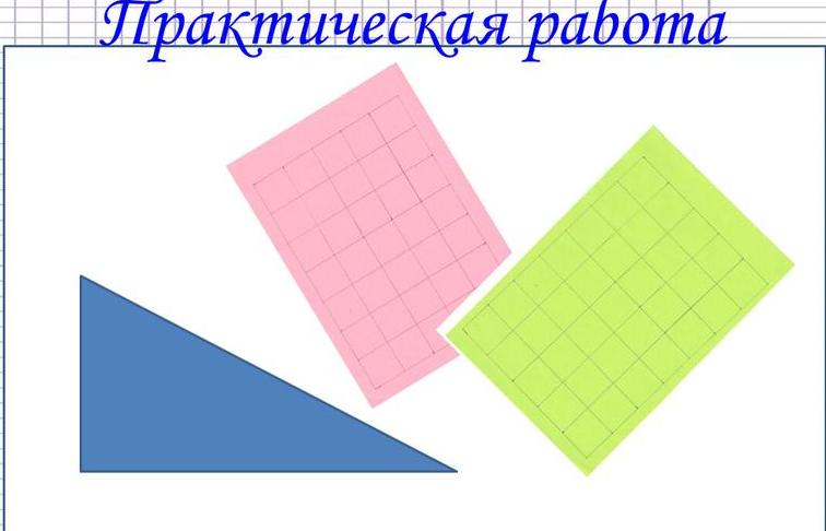 Каждой паре выдаются по 2 цветных бумаги и прямоугольный треугольник. Задача учащихся:
