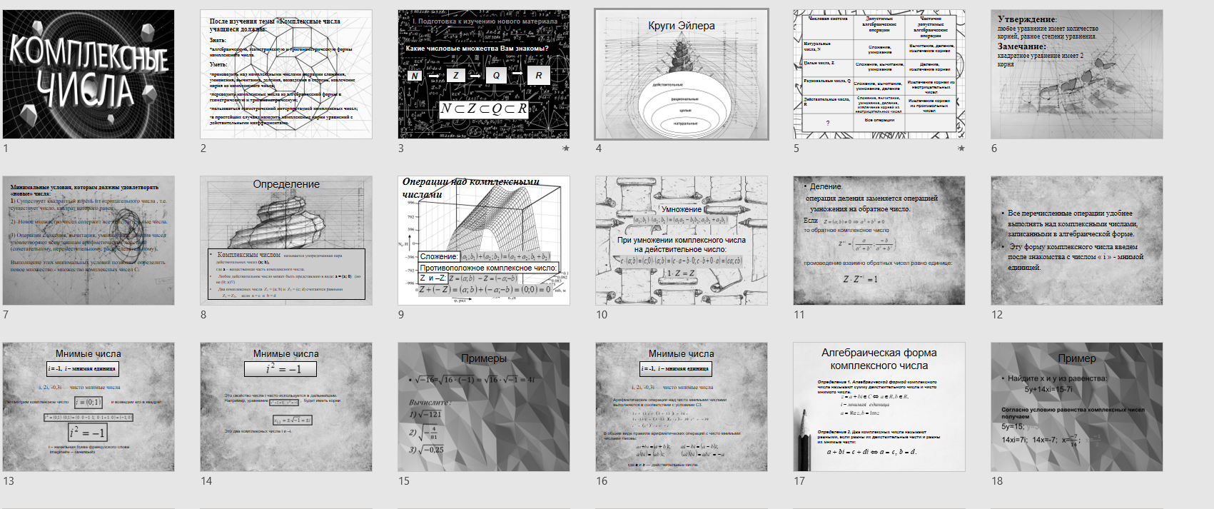 Тема: | Комплексные числа. Действия над комплексными числами. Алгебраическая форма комплексного числа. |