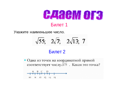 Сколько решений имеет уравнение х2=а, если а | Числа, которые можно записать бесконечной десятичной непериодической дробью |