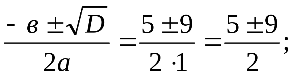 D=в2-4ас=(-5)2-4·1·(-14)=25+56=81=92>0 – два корня. У1;2=