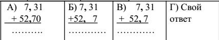 3 | На экране записаны несколько примеров. 1. Выберите верную запись сложения чисел в столбик. Найдите результат сложения в тетради (не забудьте указать букву верной записи).