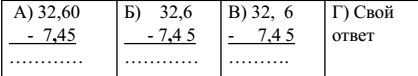 2. Выберите верную запись вычитания чисел в столбик. Найдите результат вычитания в тетради (не забудьте указать букву верной записи).