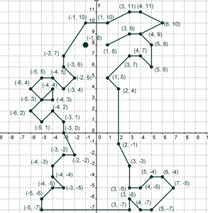 Эту игру можно провести с обратным заданием: нарисовать самим любой рисунок, имеющий конфигурацию ломаной и записать координаты вершин.