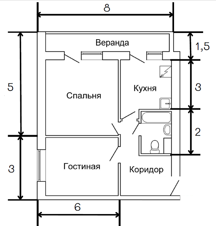 Задание 1. Внимательно изучите строительный чертёж дома и по указанным размерам вычислите его площадь (размеры указаны в метрах).