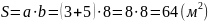 Решение. Математической моделью данного чертежа будет являться прямоугольник. Для того, чтобы найти его площадь, воспользуемся формулой площади прямоугольника и умножим длину на ширину.