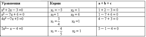 Физкульт минутка. 4. Реализация построенного проекта и закрепление изученных способов действий. | Давайте попробуем теперь сформулировать еще одно правило нахождения корней квадратного уравнения . Используя правило, которое мы сформулировали, найдите корни уравнения. 13х2 + 18х - 31 = 0 5х2 -27х + 22 = 0 х2 + 4х-5 =0 | (Слайд 9) Если в уравнении aх2 + bх + с = 0 сумма коэффициентов a + b + c = 0,