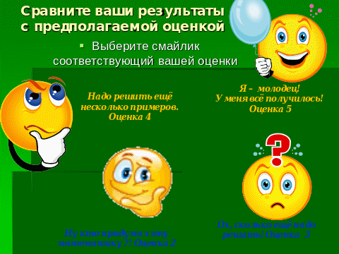 Рефлексия Цель: Организовать рефлексию учащихся по поводу их эмоционального состояния. Мотивация их деятельности |