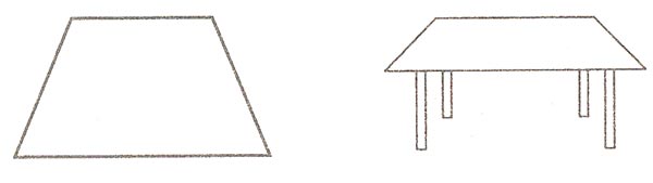 -Эта фигура называется трапеция. Название ее произошло от греческого слова трапезион, что значит столик, и от этого же слова происходит наше русское слово трапеза, т.е. стол, кушанье, прием пищи. Посмотрите на рисунок. Не правда ли, трапеция похожа на столик?