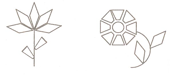 -Теперь каждая команда получает изображение цветка из геометрических фигур. Вы должны назвать фигуры, из которых составлены лепестки и листья цветка.