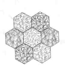 1. С помощью картонных шаблонов вырезать семь шестиугольников