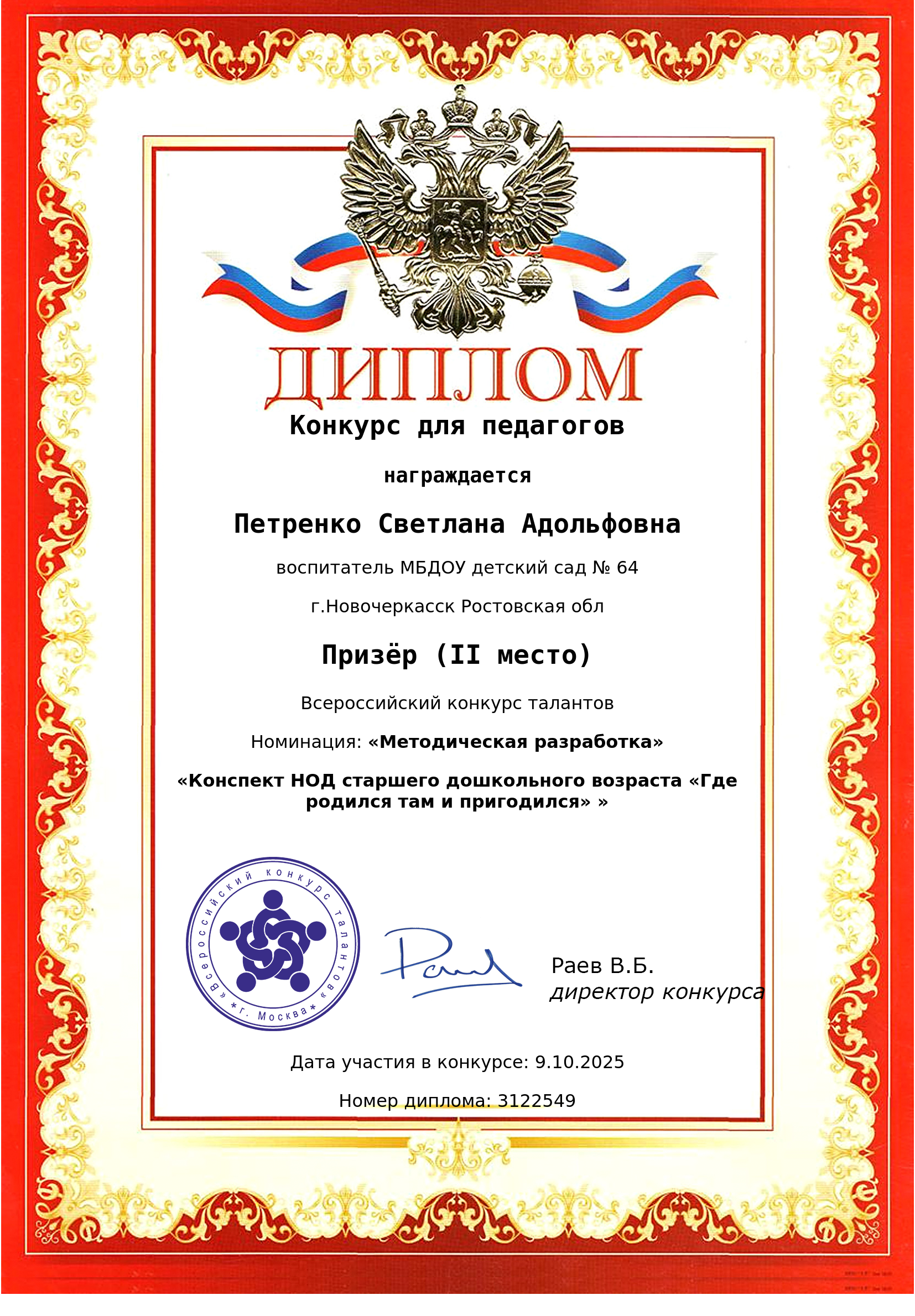 Патриотическое воспитание детей является одной из основных задач дошкольного учреждения. Чувство патриотизма многогранно по содержанию. Это и любовь к родным местам, и гордость за свой народ, и ощущение своей неразрывности с окружающим миром, и желание сохранять и приумножить богатство своей страны. Поэтому нашей задачей является: развитие чувства ответственности и гордости за достижения страны - данные задачи решаются во всех видах детской деятельности: на занятиях, в играх, в труде, в быту.