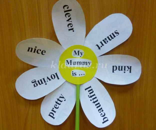 Ласкательные слова о маме прикрепляют к лепесткам ромашки: