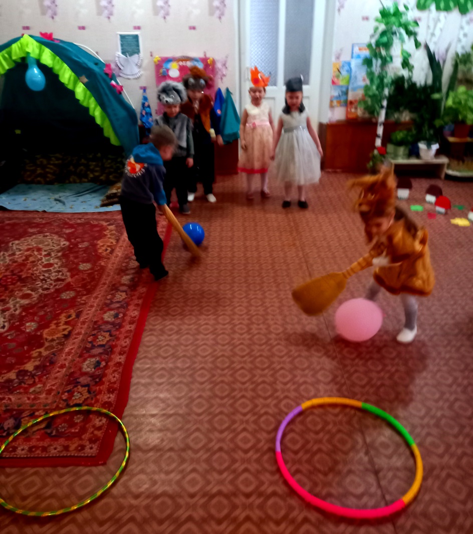 Воспитатель: Наши ребята очень большие помощники своих мам и мы сейчас это продемонстрируем . Конкурс «Веникобол».