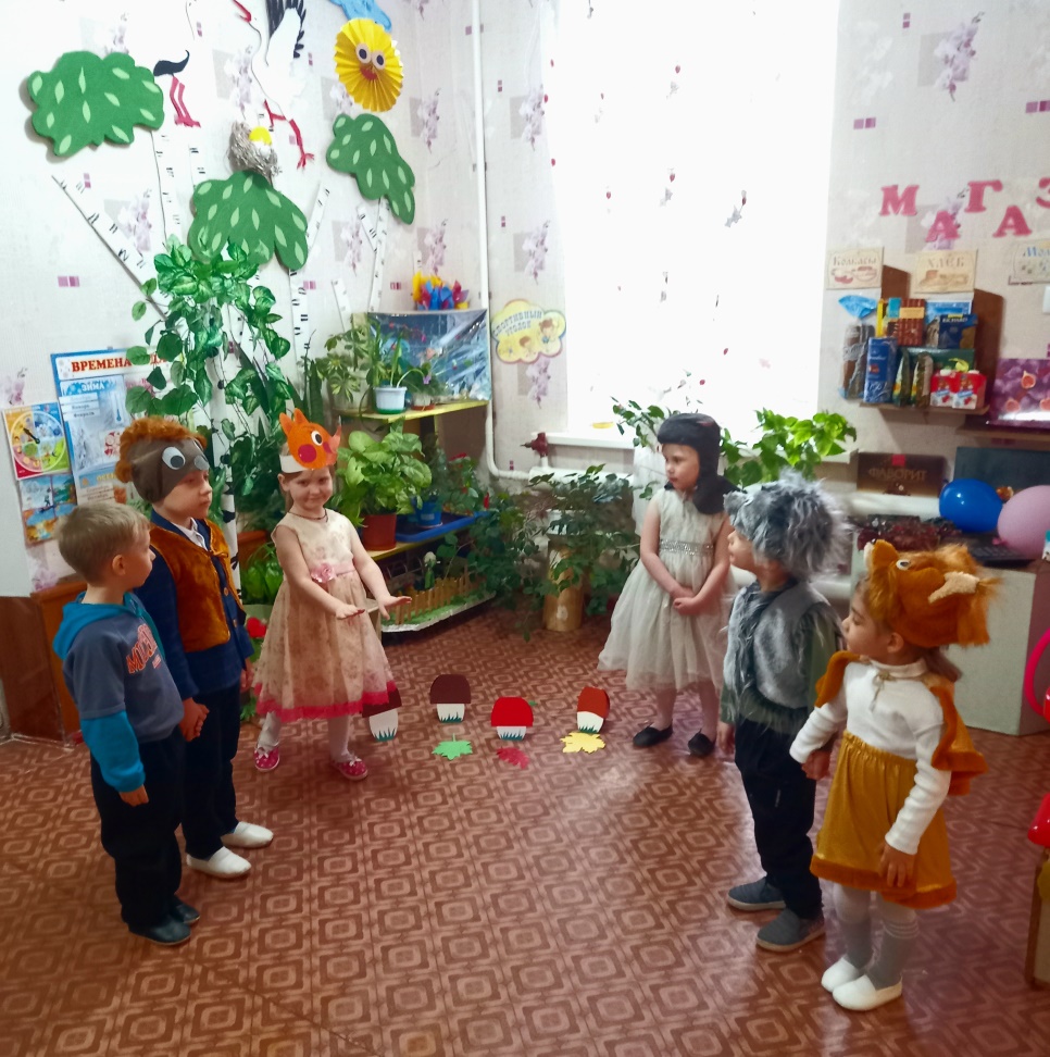 Воспитатель: Праздник мам празднуют осенью. Я знаю одну историю, которая произошла как раз в это время года. Сценка: « Как звери грибы собирали».