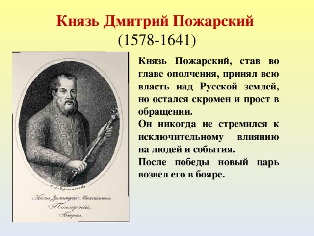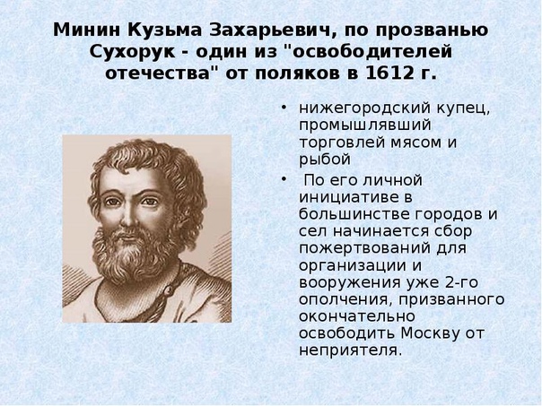 И такой человек нашёлся – это был Кузьма Минин, нижегородский земский староста.