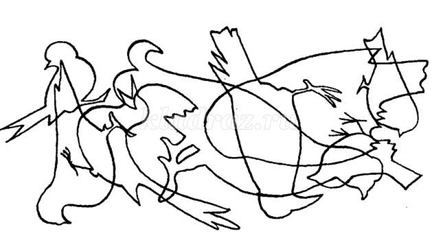 Надо каждой команде найти всех птиц и заштриховать цветными карандашами.