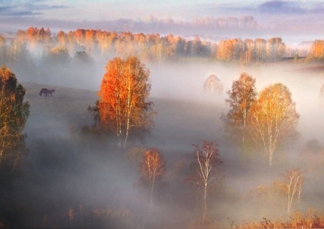 Сентябрь совмещает лето и осень. Этот месяц строг, но справедлив. Оранжевеют осины. Полыхают холодным пожаром березовые рощи, горят костры рябин. Осыпается лист, стелются желтые дорожки.