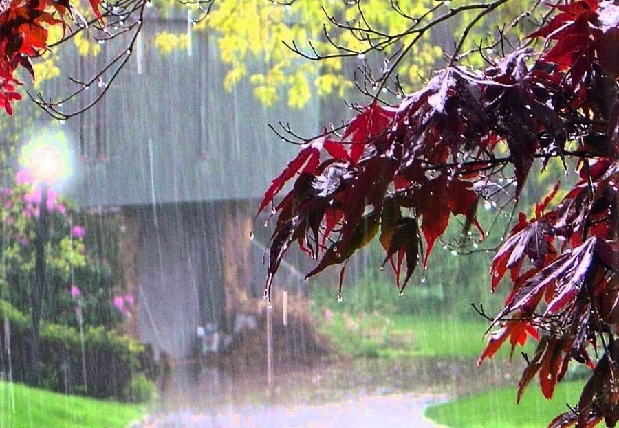 В доме сухо, а снаружи Сбрасывает листья сад -
