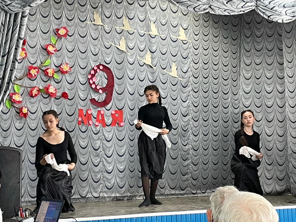 Ведущий 10: Всё дальше уходят события тех лет. Но никогда не изгладится из памяти людской день 9 мая 1945 года – светлый праздник победы нашего народа в битве с фашизмом. Всегда люди будут благодарны участникам той страшной войны, сумевшим одолеть жестокого врага.
