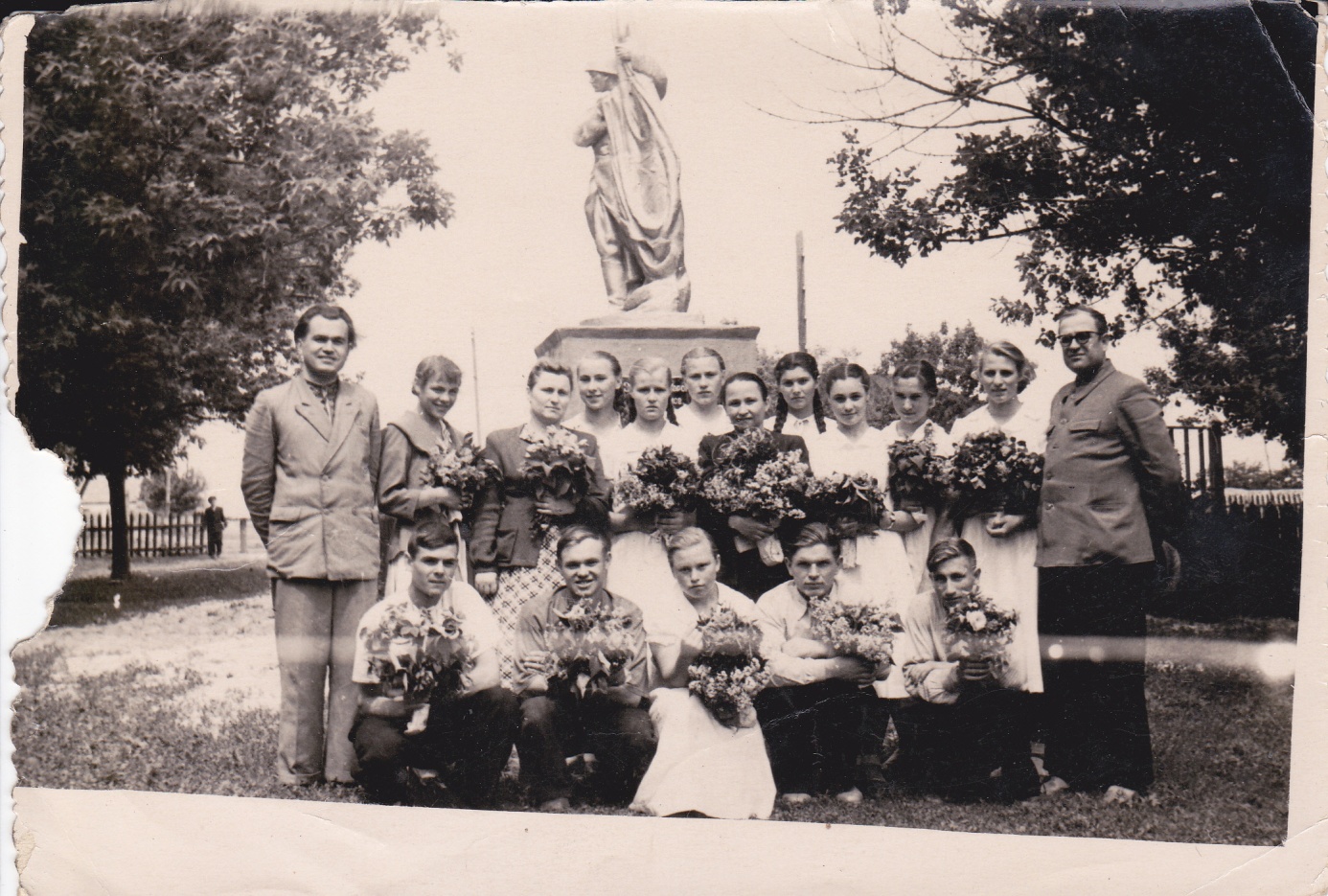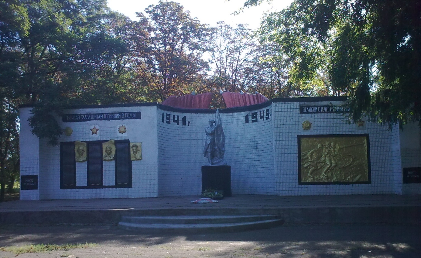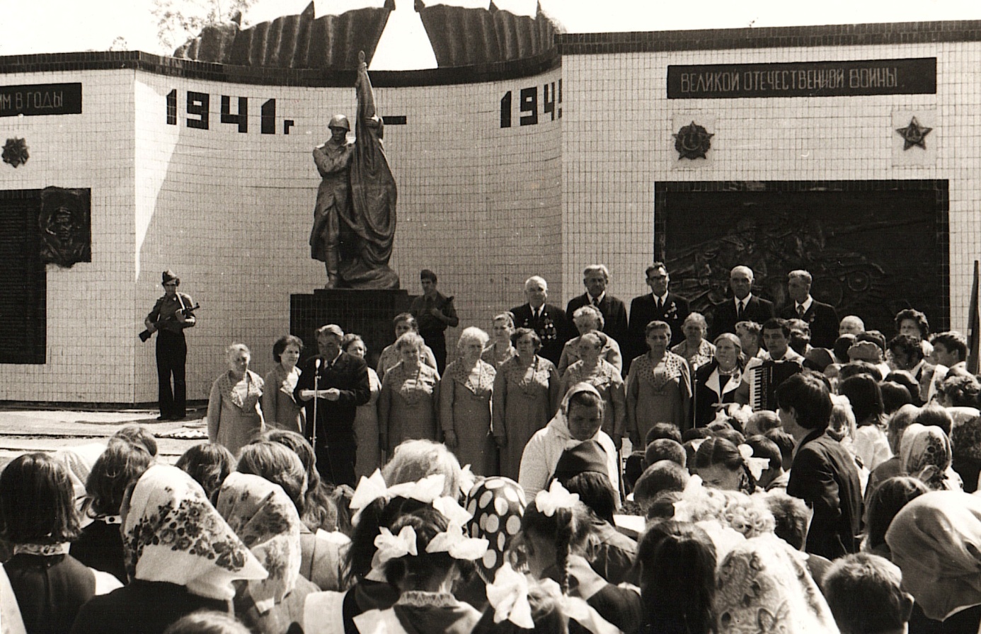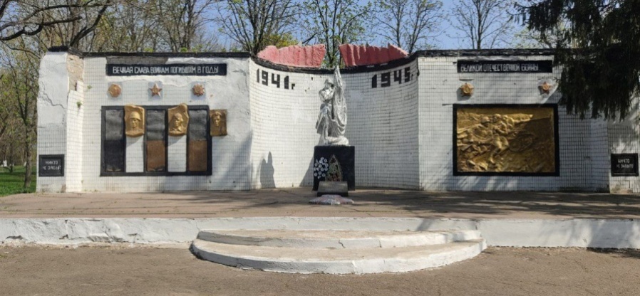 оинов Советской Армии, которые были захоронены на кладбище. Позже в селе был развернут полевой походный госпиталь. В центре села были похоронены три неизвестных бойца, умерших от ран в госпитале. В 1949 году останки воинов были перезахоронены в одну братскую могилу в сельском парке, где в 1955 году был установлен памятник. Такой вид памятник имел до 1975 года. К празднованию 30-летия победы над фашистской Германией, весной 1975 года, был открыт мемориальный комплекс погибшим воинам и 158 односельчанам, которые погибли в боях за свободу нашей Родины.