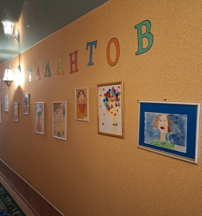 Оформление выставки рисунков «Мамин портрет»
