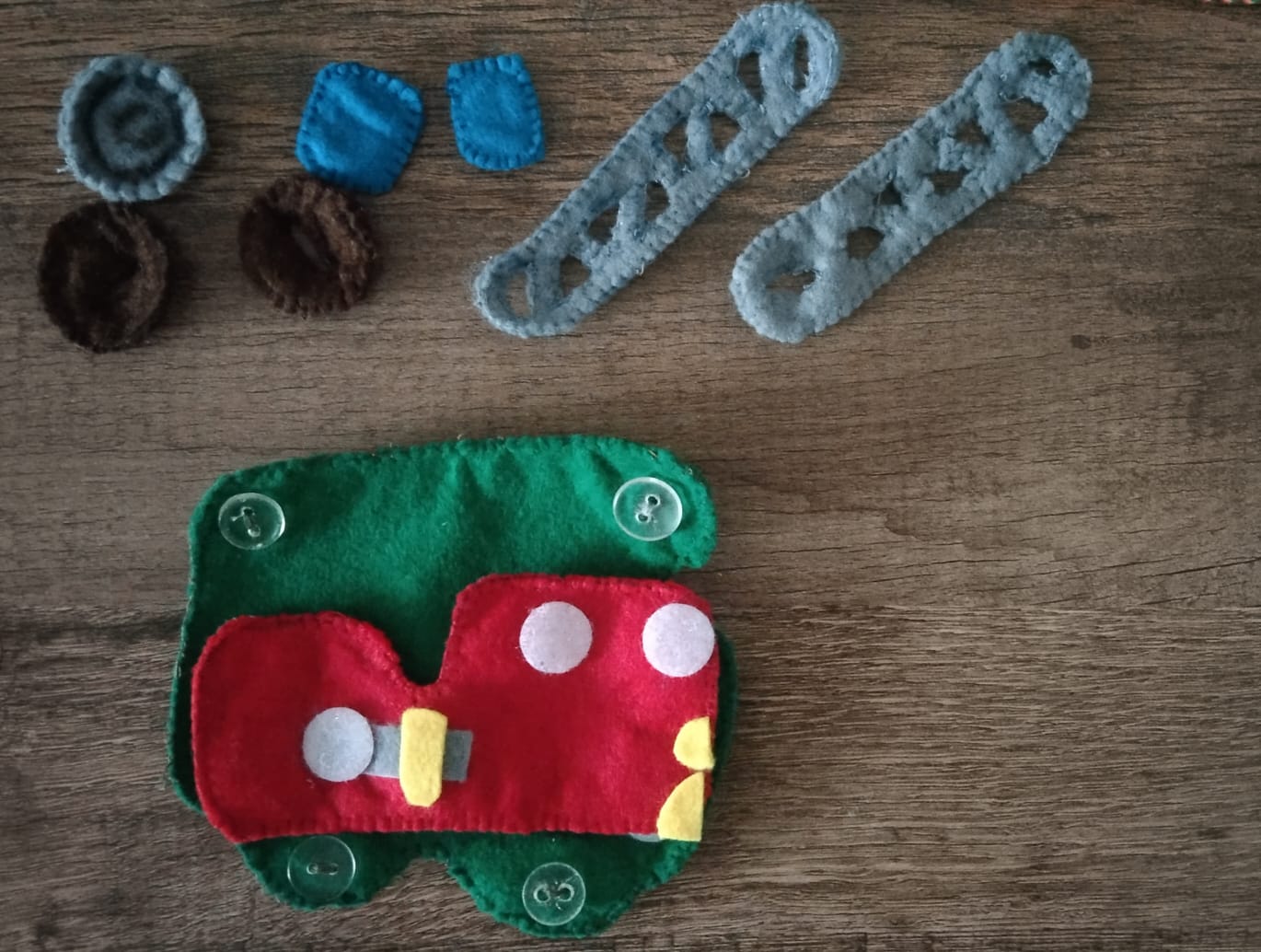 Материал, из которого изготовлено пособие это картон, фетр, пуговицы.