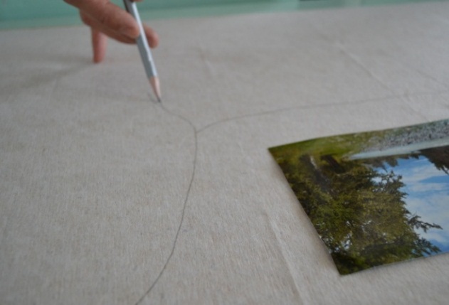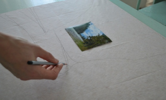 2 этап. Далее необходимо наметить основные природные объекты для изготовления пейзажа при помощи карандаша, увеличивая изображение в 5 раз (рисунок 9).
