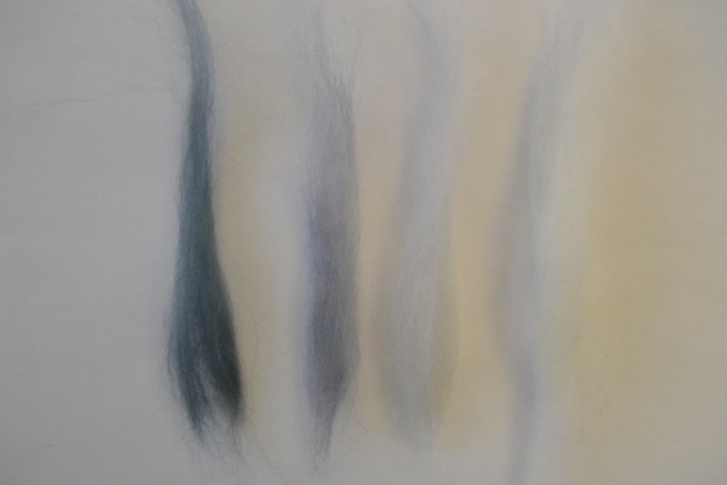 9 этап. Для получения камней различных оттенков, смешать в разных пропорциях белый цвет с оттенками серого, при этом волокна измельчить путём разрывания (рисунок 21).