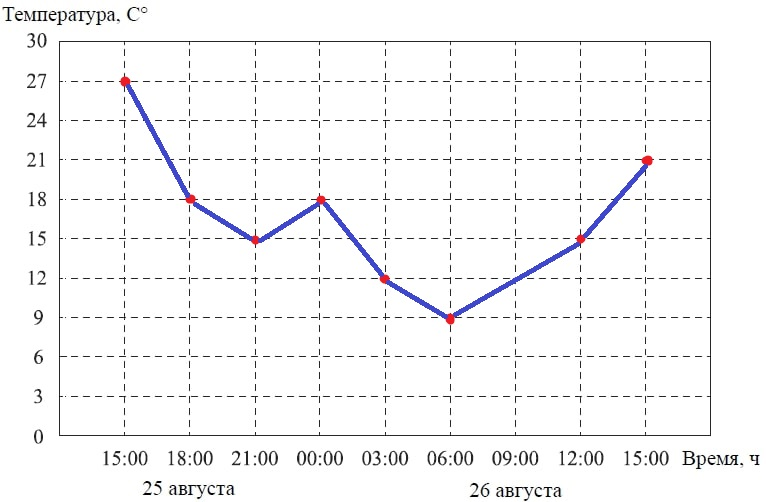 - как изменяется температура, в какой время она была наибольшей, наименьшей.