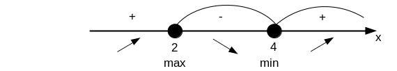 на числовой оси и определим максимум или минимум функции.