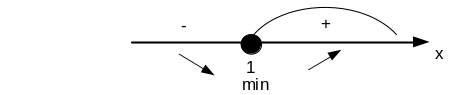 Корень принадлежит области определения функции. Отметим точку на числовой оси и определим максимум или минимум функции.
