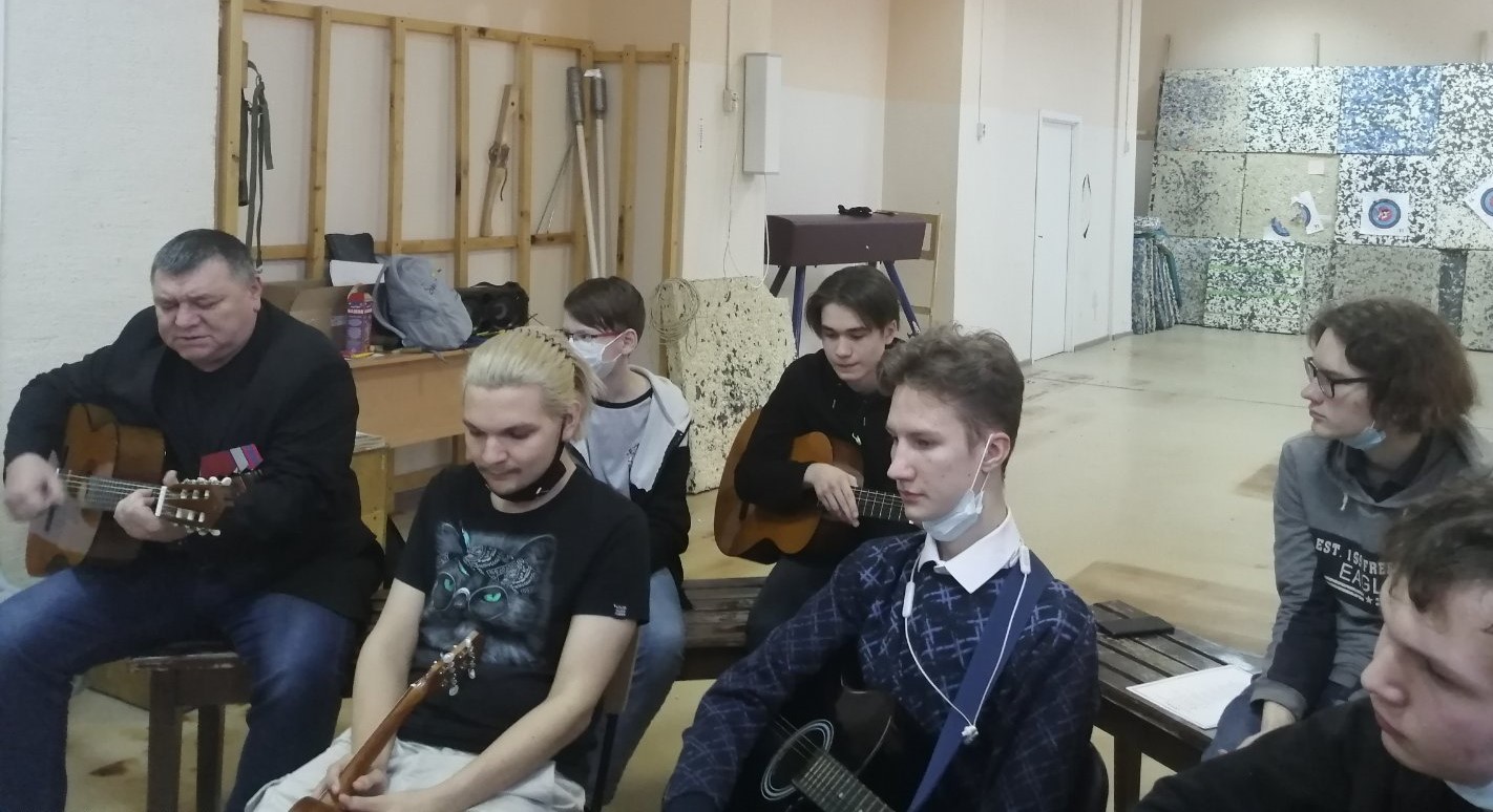 В рамках патриотической декады и в рамках социального проекта «Подростковый квартирник», 19.02.2022 – прошел очередной подростковый квартирник «Россия – это МЫ», на базе учреждения «Каскад» (ул.Советский пр., д.10). Мы с обучающиеся объединения «Поющая гитара», МАУ ДО «ШРТ им. Л.А.Старкова», подбирали и разучивали песни патриотической направленности. На квартирнике, вместе с ветеранами Афганской войны, Алексеем Валерьевичем Кропачевым и Владимиром Вальтеровичем Демидовым, вместе пели и шутили, слушали интересные рассказы о службе в армии, Афганистане, Чечне, с интересом рассматривали армейские фотоальбомы и слушали песни под гитару в исполнении Алексея Валерьевича. Обучающихся и педагоги исполняли добрые и хорошие песни патриотической направленности о Родине, о любви, о весне, о городе и т.п. Затем, Владимир Вальтерович провел мастер-класс по стрельбе из лука, это было очень интересно и увлекательно, оказалось совсем не просто стрелять из лука и попадать в мишень.
