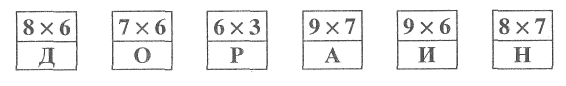 2.Представьте каждое число (18, 28, 6, 14, 15, 35, 12, 45, 36) в виде произведения двух чисел и замените его буквой, записанной на пересечении строки и столбца, номера которых совпадают с множителями данного числа. Прочитайте зашифрованный текст.