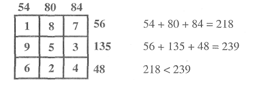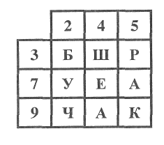 1. На доске изображен квадрат, разделенный на 9 клеток. К доске выходят от каждой команды по одному счетчику. Они по очереди вписывают в любые клетки квадрата числа от 1 до 9 включительно.