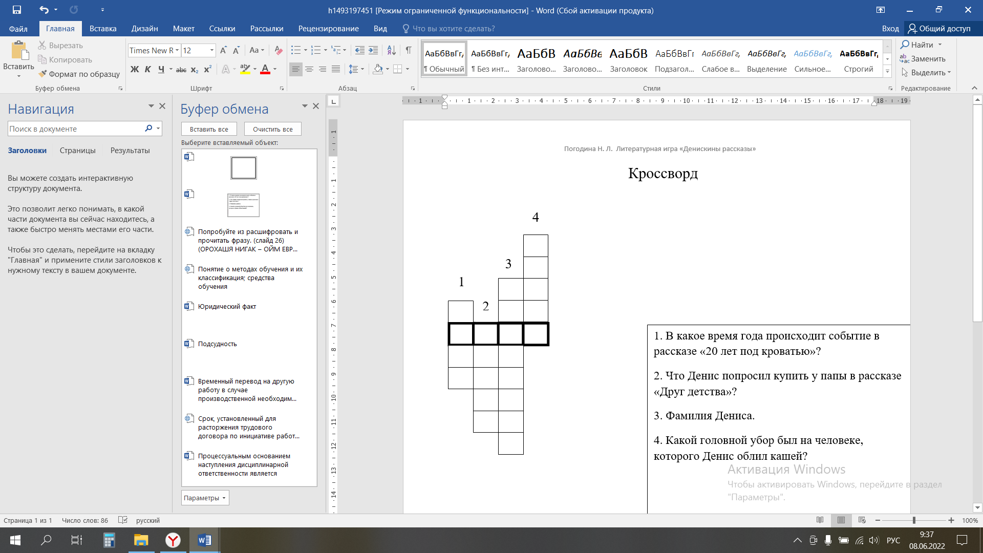 Вопросы и задания1. Попробуй расшифровать и записать фразу. ОРОХАШЯ НИГАК – ОЙМ ЕВРЫНЙ УДРГ ____________________________________________________________________________ 2.Какое настроение вызвали у тебя произведения В.Драгунского? ______________________________________ ______________________________________ ______________________________________ 3.На голову какой птицы приземлилась шляпа гроссмейстера? _____________________________________ 4. Фамилия Дениски. _____________________________________ 5. Фамилия Мишки _____________________________________ 6. Какой приз получил Дениска за костюм кота в сапогах? _____________________________________ 7.Что всегда становится явным? _____________________________________ 8. Кем был для Дениски игрушечный медвежонок? _____________________________________ | Кроссворд
