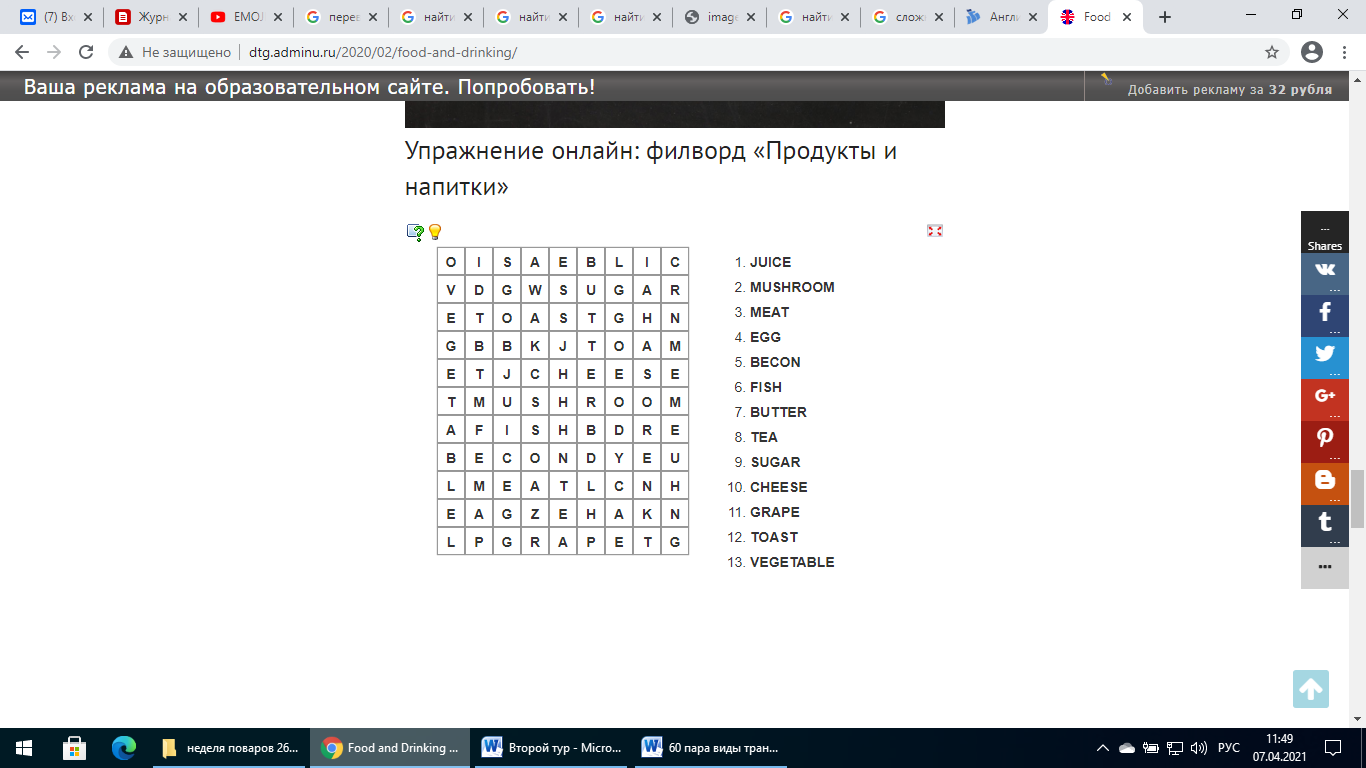 УРОК-ИГРА “WELCOMETOFOOD-Party.”