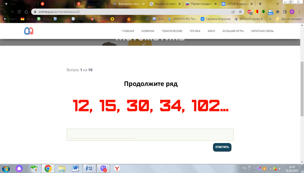 Заочная викторина «Математическая мозаика» (8, 9 класс)