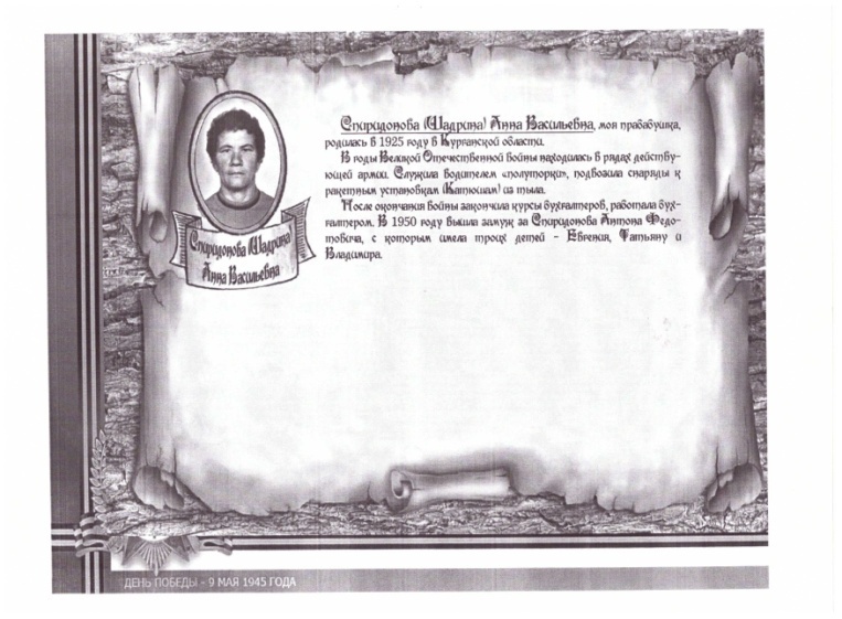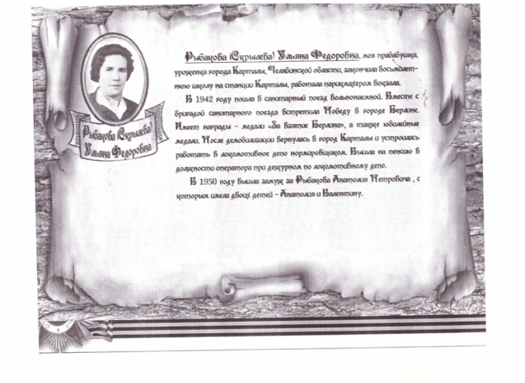 Ведущий:(Слайд 14, 15, Приложение 1)В семье Глебских воевал не только прадед, но и прабабушки. О них нам расскажет Ксения Глебских.