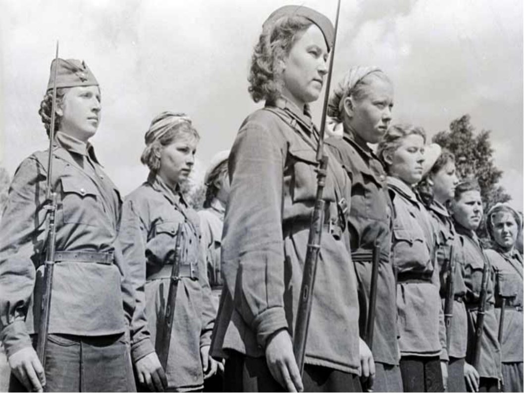Ведущий:(Слайд 12, 13, Приложение1)Говорят: «У войны неженское лицо» Советские женщины совершили бессмертный подвиг во имя Родины в тылу страны. Преодолевая величайшие трудности военных лет, не щадя сил, они делали все, чтобы обеспечить фронт тем, что требовалось для победы. Но не только в тылу, но и на фронте женщины проявляли героизм.
