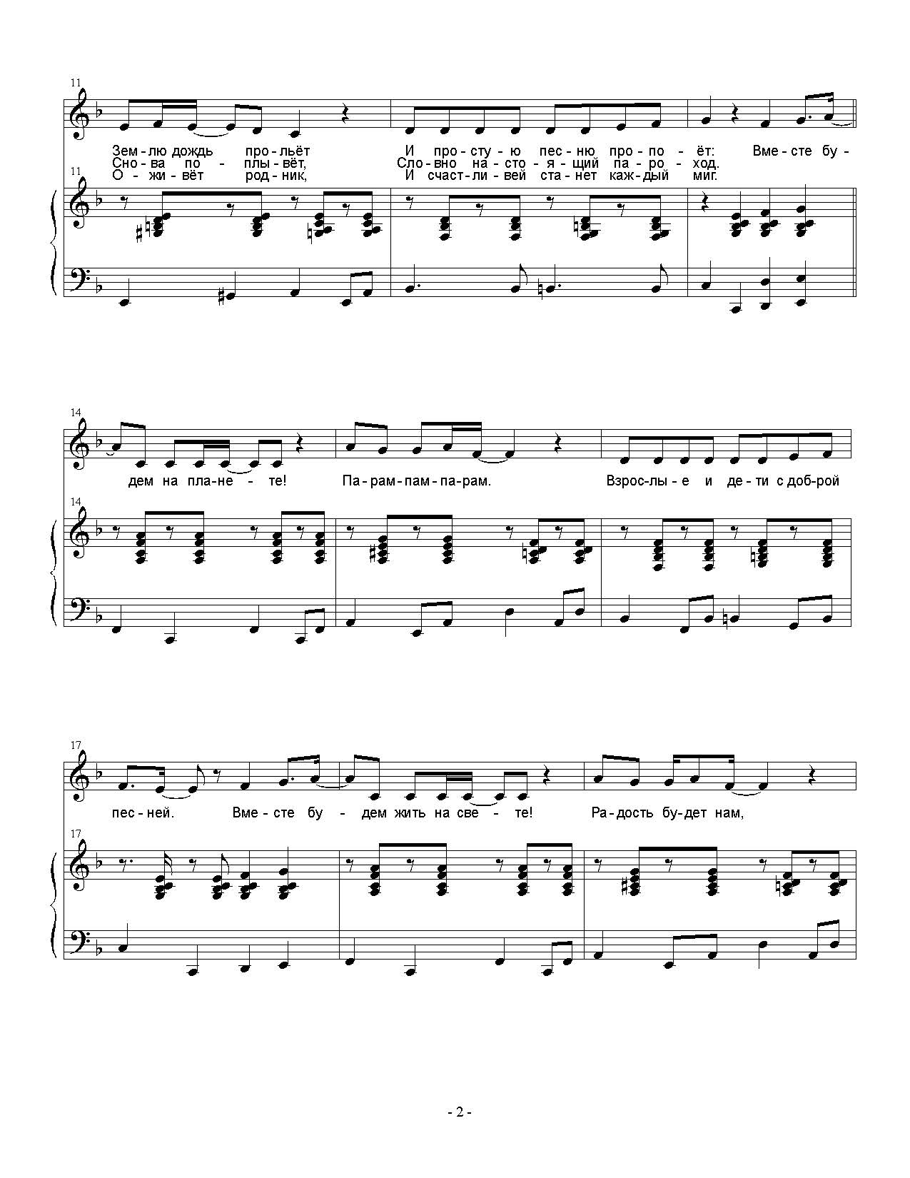 2. Дружбу, радость, ласку, песни, звонкий смех...