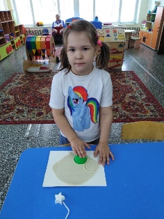 Воспитатель: - А сейчас посмотрите какую медальку мы с вами будем лепить из волшебного теста. Посмотрите, ребята, в каком порядке вы будете работать. (воспитатель показывает алгоритм работы).