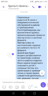 В связи с эпидемиологической обстановкой в районе и области, а также с требованиями Роспотребнадзора, воспитателями группы было принято решение провести мастер-класс для родителей по изготовлению поделок из соленого теста к празднику 23 февраля в заочном (дистанционном) формате.