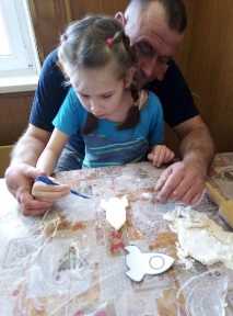 В связи с творческой темой «23 февраля - День защитника Отечества», мы провели мастер – класс для родителей, целью которого являлось: научить родителей использовать возможности соленого теста в совместном творчестве с детьми, на котором мы познакомили родителей с особенностями и технологическими возможностями данного материала; научили изготавливать соленое тесто, показали приемы работы с тестом, попытались вовлечь родителей в совместную досуговую деятельность с детьми.