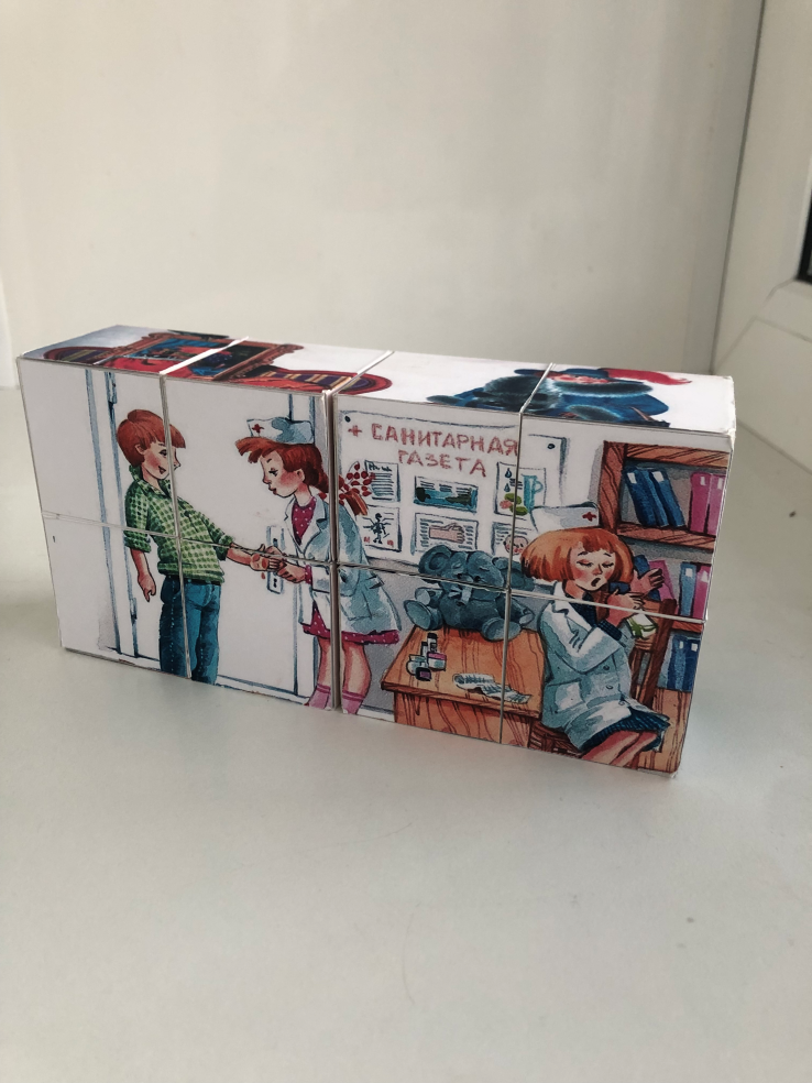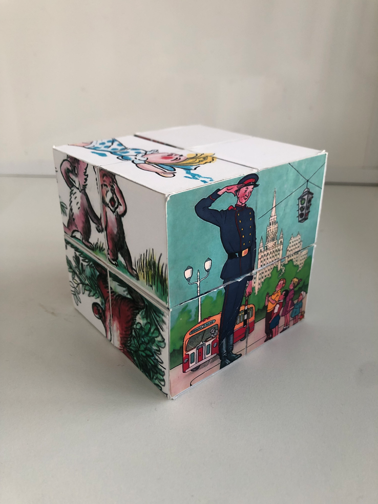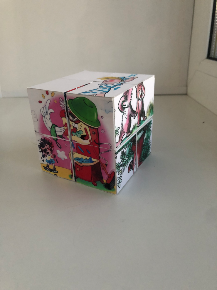 Пособие представляет собой куб-трансформер с иллюстрациями из произведений:
