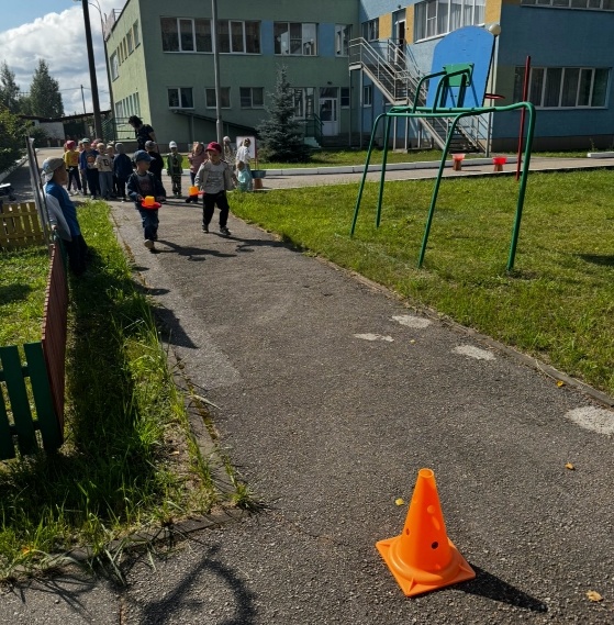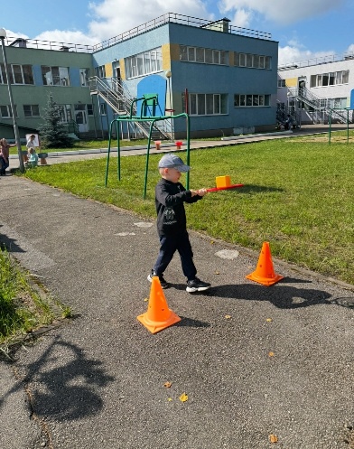 аждый ребенок на бадминтонной ракетке на вытянутой руке, переносит желтый кубик. По сигналу дети начинают движение от линии старта. Их задача состоит в том, чтобы дойти до линии «финиша», но при этом не уронить кубик. Если игрок в процессе движения уронит шарик, то должен поднять его, вернуться на то место, где уронил, положить кубик в ракетку и только потом продолжить движение.