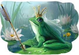 В сказке «Царевна-лягушка» царь посылает своих сыновей найти жен по стрелам. Стрела Ивана-царевича попадает на болото, и ему приходится жениться на лягушке. Она справляется с царскими заданиями благодаря колдовству, и Иван, пораженный её красотой, сжигает лягушачью кожу. В результате Василиса исчезает, и Ивану приходится отправиться на её поиски, победить Кощея Бессмертного, чтобы вернуть любимую и жить с ней долго и счастливо.
