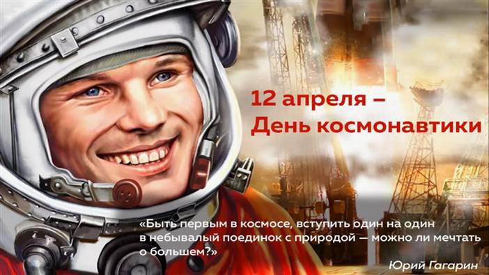 Учитель: День космонавтики, отмечаемый 12 апреля, является важной датой как для России, так и для всего мира. Этот день посвящен первому в истории полету человека в космос, который совершил Юрий Гагарин в 1961 году на космическом корабле «Восток-1». Полет Гагарина стал символом научного прогресса и достижения человечества, открыв новую эру в освоении космоса. (слайд 4)