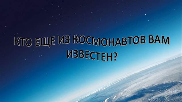 Учитель:Кто еще из космонавтов вам известен? Знаете ли вы других известных космонавтов, кроме Гагарина? (ответы детей) (слайд 8-9)