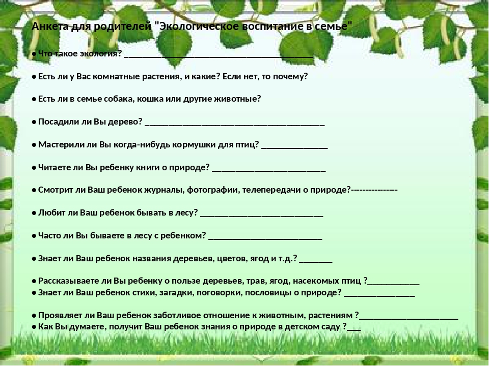 способствовать повышению компетентности родителей в вопросах экологического воспитания детей.